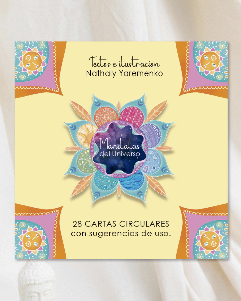 Descubre el Oráculo "Mandalas del Universo", un mazo circular de 28 cartas plastificadas a todo color que te invitan a un viaje de autodescubrimiento y sanación. Cada carta es un hermoso mándala, diseñado para ayudarte a redescubrirte, aprender a quererte y tomar conciencia de lo que necesitas cambiar en tu vida.